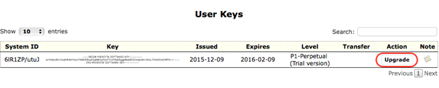 升级免费试用许可到付费许可,点击'Upgrade', 然后出现选择付费许可的等级和相应价格: