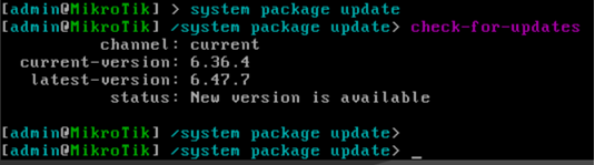 进入/system package upgrade下,使用check-for-updates命令,检查最新版本