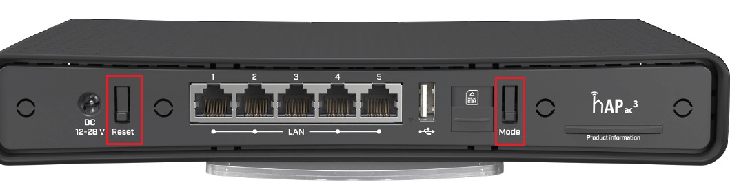 MikroTik硬件设备都有reset按钮,部分设备还带有一个Mode按钮,他们作用如下:
