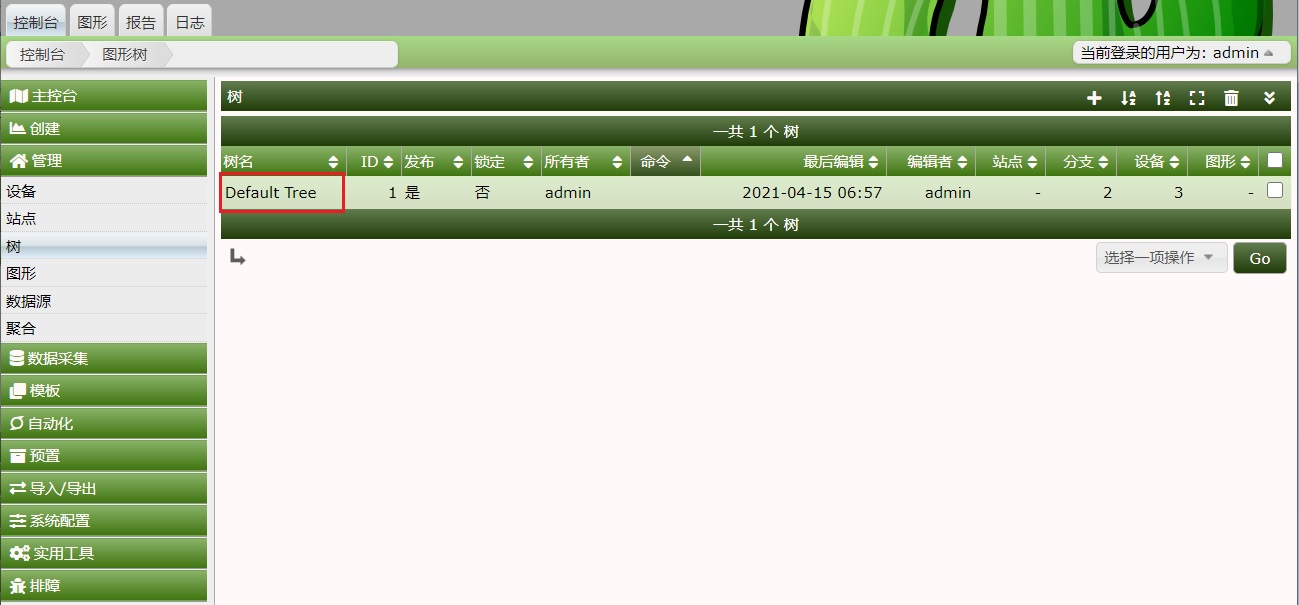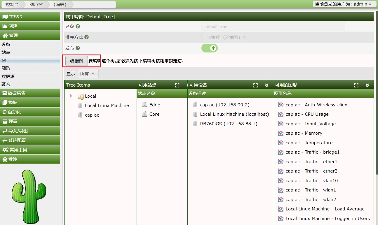 打开后,可以进入图形树结构的编辑,可以为图形树添加设备,点击“编辑树”