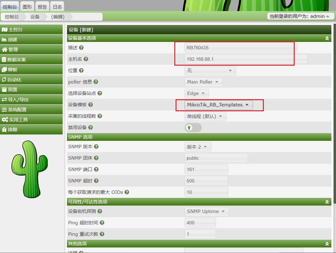 Cacti 1.2.16搭建完成后,如何添加一台设备的流量图,这里我通过添加一台RB760iGS为例