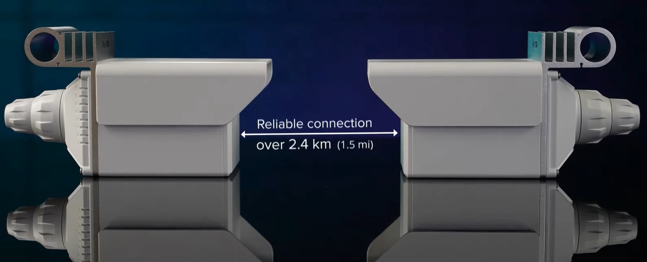 CubeSA 60Pro ac扇形天线。该设备以点对多点的方式达到600米左右的距离,对各种现场的活动如:现场表演、节日庆典、工厂车间到建筑工地、临时接种诊所等。在各个点位不需要复杂的有线连接安装,使用便携式的CubeSA 60Pro ac,能实现快速便捷网络覆盖。如果需要获得更大的距离,可以选择MikroTik nRAY设备,能获得800米的无线传输距离。