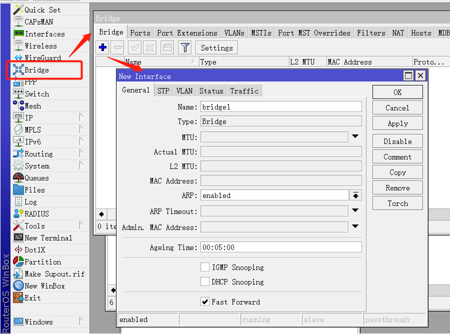 创建交换机配置,首先从添加一个Bridge接口开始: