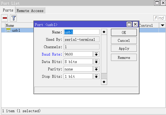 [admin@MikroTik] /port>需要进入system console下删除本设备的console配置,然后在重新配置port