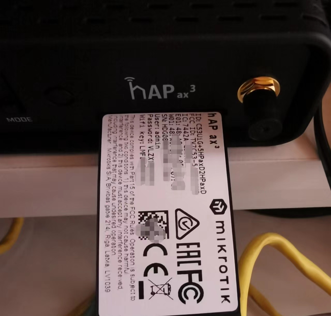 为了遵守即将出台要求提高网络设备安全性的法规,MikroTik开始在硬件产品中推出默认密码(而不是现在的空密码)。在最近收到的某些设备上已经发现了默认密码变动。密码写在设备的产品标签上(注意:一些设备为隐藏式,如hAP ax3,它有一个滑动卡片,标签存放在里面),也写在设备包装上的贴纸上。如果标签丢失或者损坏,还可以从购买的分销商找到密码。后续,MikroTik计划在所有设备上都有一个默认密码,但这个实施的进度还比较缓慢。