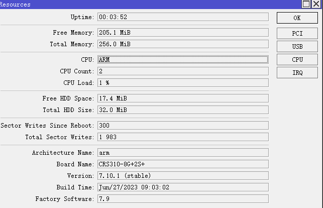 查看资源,256M内存,ROM 32M,CPU双核心ARM,但看不到CPU的频率很奇怪