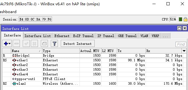 下面hAP lite在开启IGMP Snooping后的情况,CPU使用率为51%