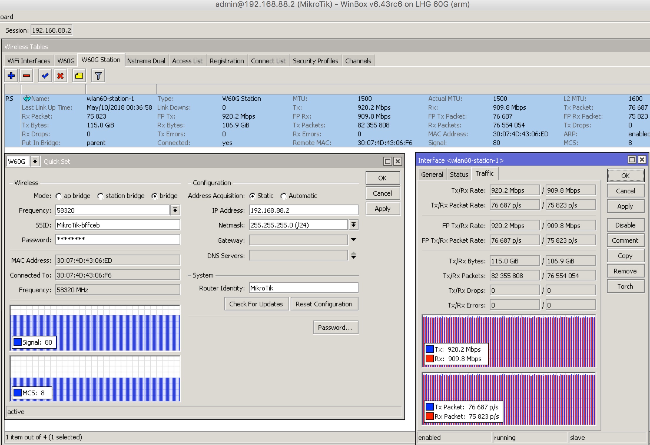 LHG60G 配置Bridge模式 (192.168.88.2) - - to - - LHG60G配置Station-Bridge模式 (192.168.88.3)