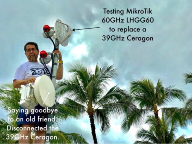 一个夏威夷的用户使用MikroTik LHG 60G设备替换了Ceragon (以色列赛瑞根)的39GHz无线设备
