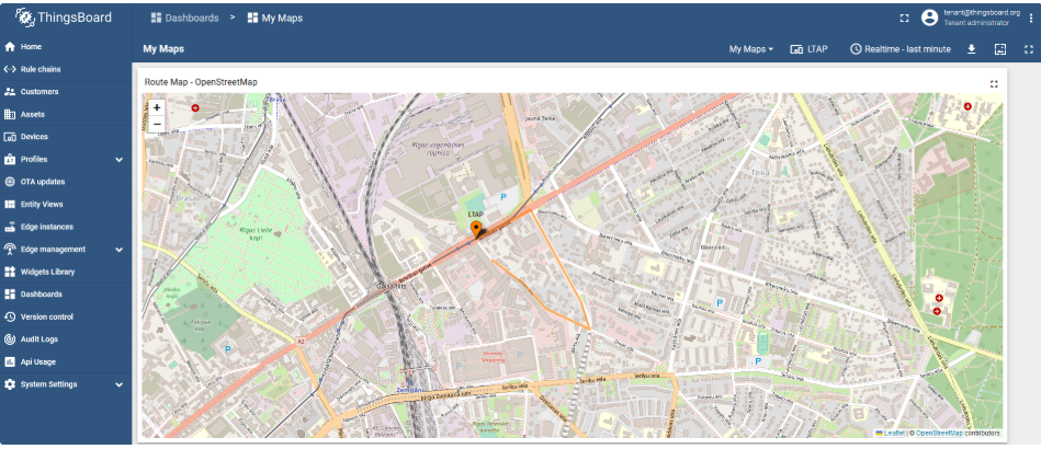 ThingsBoard 允许您使用 Widgets 小部件创建美观的仪表盘。在本例中,需要跟踪 LtAP GPS 坐标,因此需要一个地图小部件。
