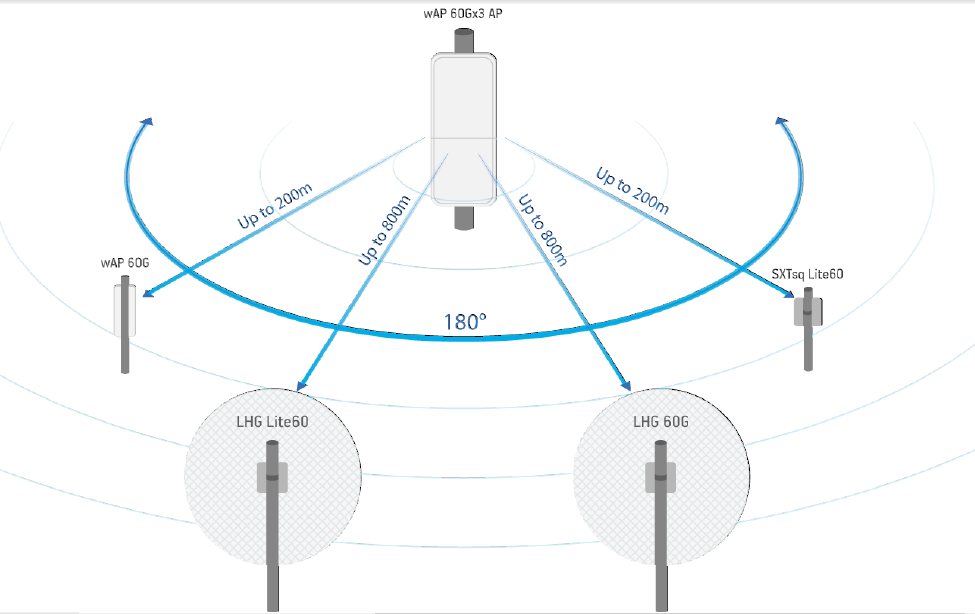 这样通过60GHz频谱实现高速的点对多点近距离覆盖,能进一步优化无线传输带宽的成本。同时两个wAP 60Gx3 AP也能做点对点传输。