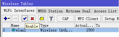 设置完成后,如果wlan1项是灰色的代表是禁用状态,需要点勾,enable启用wlan1网卡
