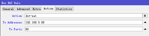 在action选择dst-nat操作,to-address设置内网http服务器IP地址,和端口80