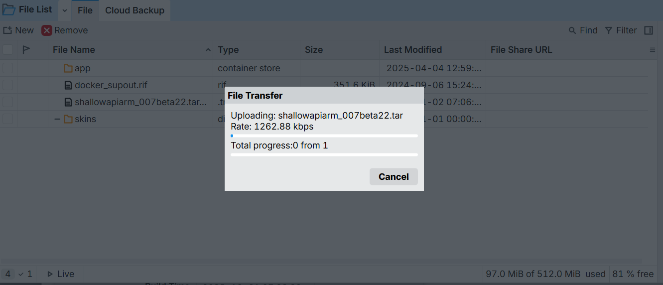 上传完成后,可以看到shallowapiarm_007beta22.tar