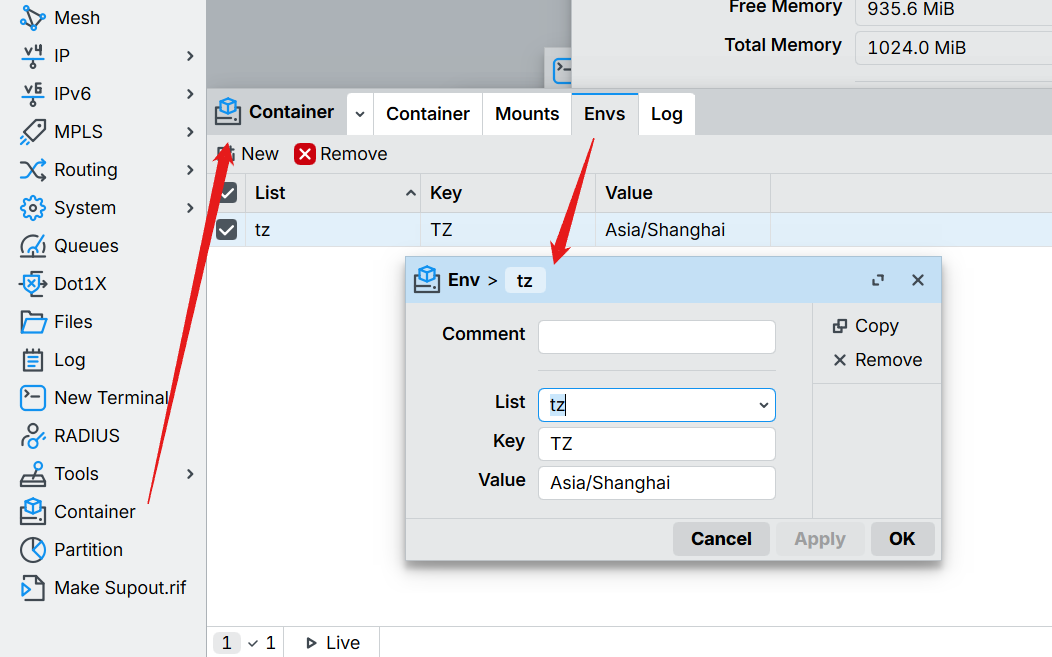 然后进入container目录,创建 Shallow API 容器,进入Envs创建一个时区环境,设置TZ为Asia/Shanghai