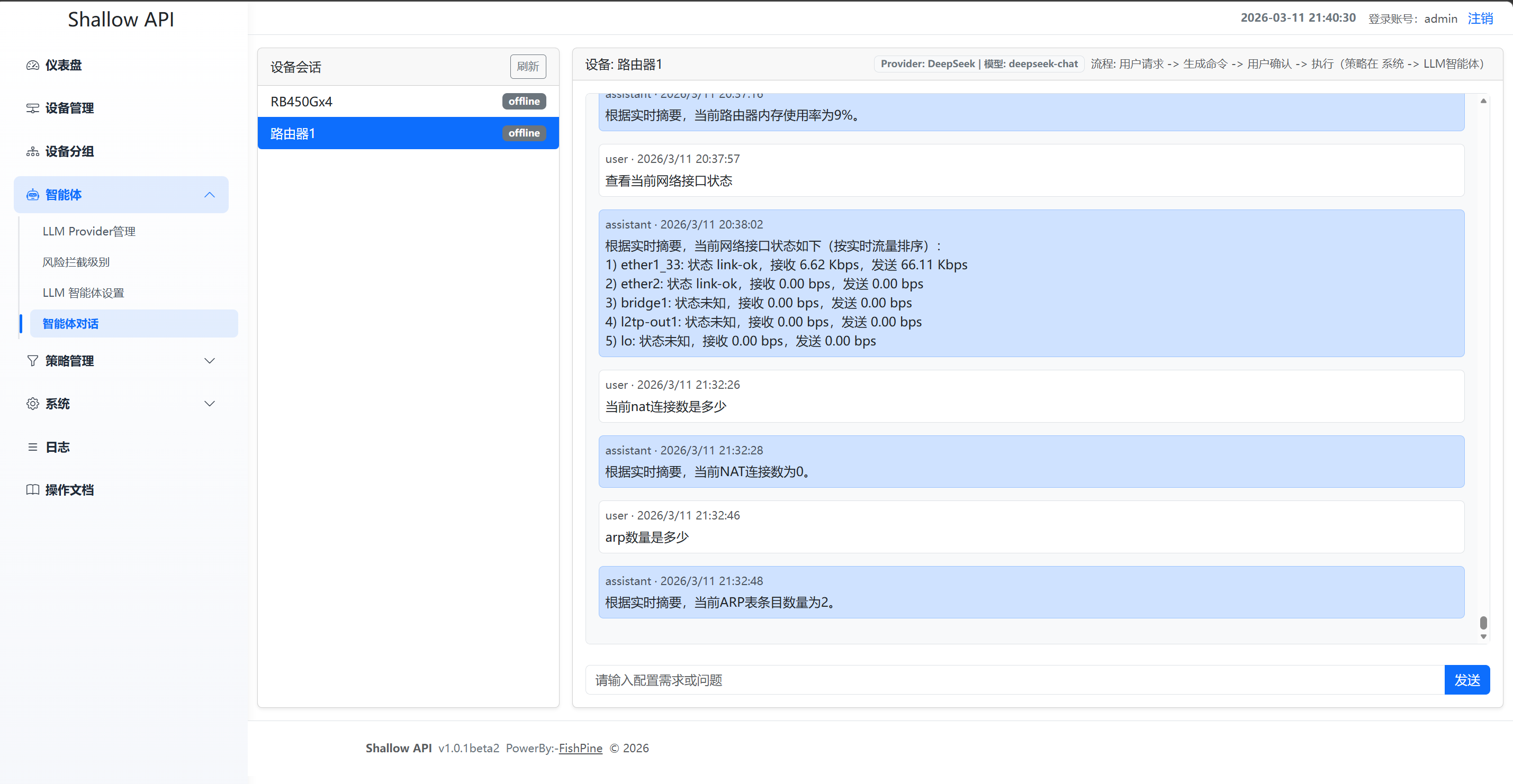 - 只读查询意图优先直查(RouterOS 只读路由)+ LLM 解释