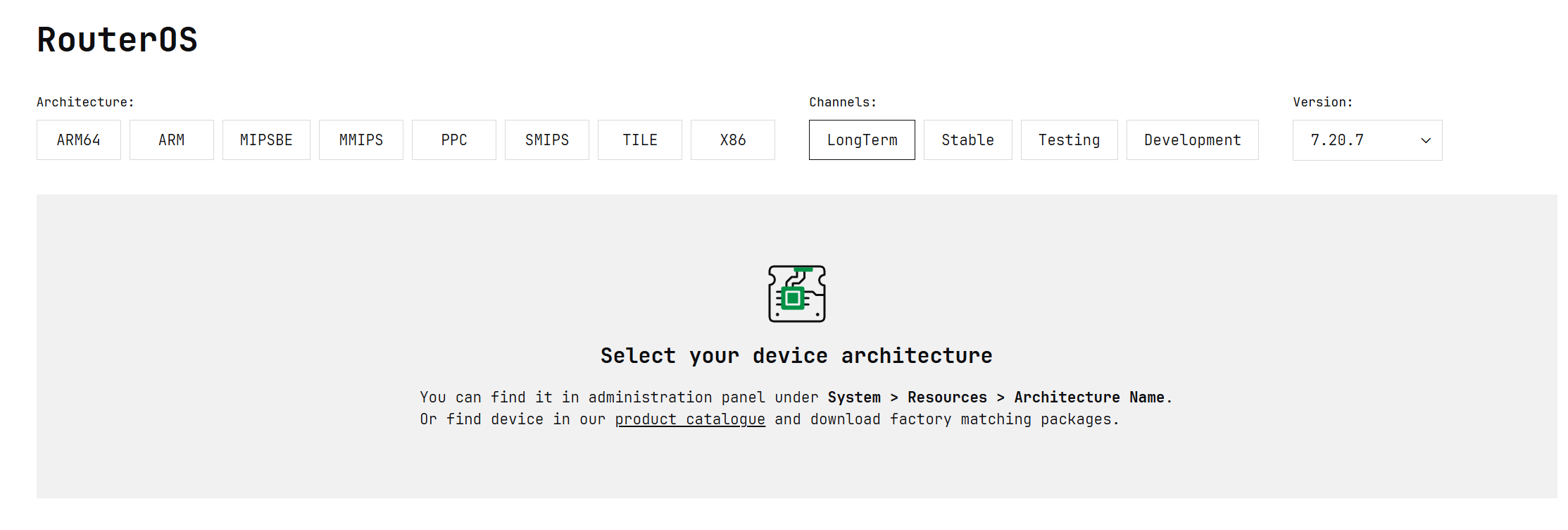 RouterOS v7 现在有2个节点版本要给v7.12+和v7.20LTS,低于v7.12版本的RouterOS需要用v7.12作为一个升级的跳板才能向v7.12+升级,不能直接从7.12以下升级到更高的版本。
