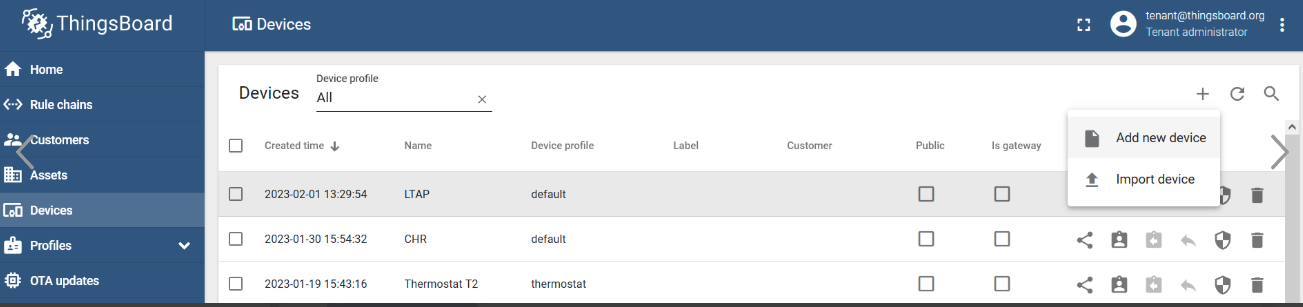 导航至"Devices"菜单,然后点击“Add new device”按钮添加新设备→ 为其命名并创建设备(例如,LTAP):